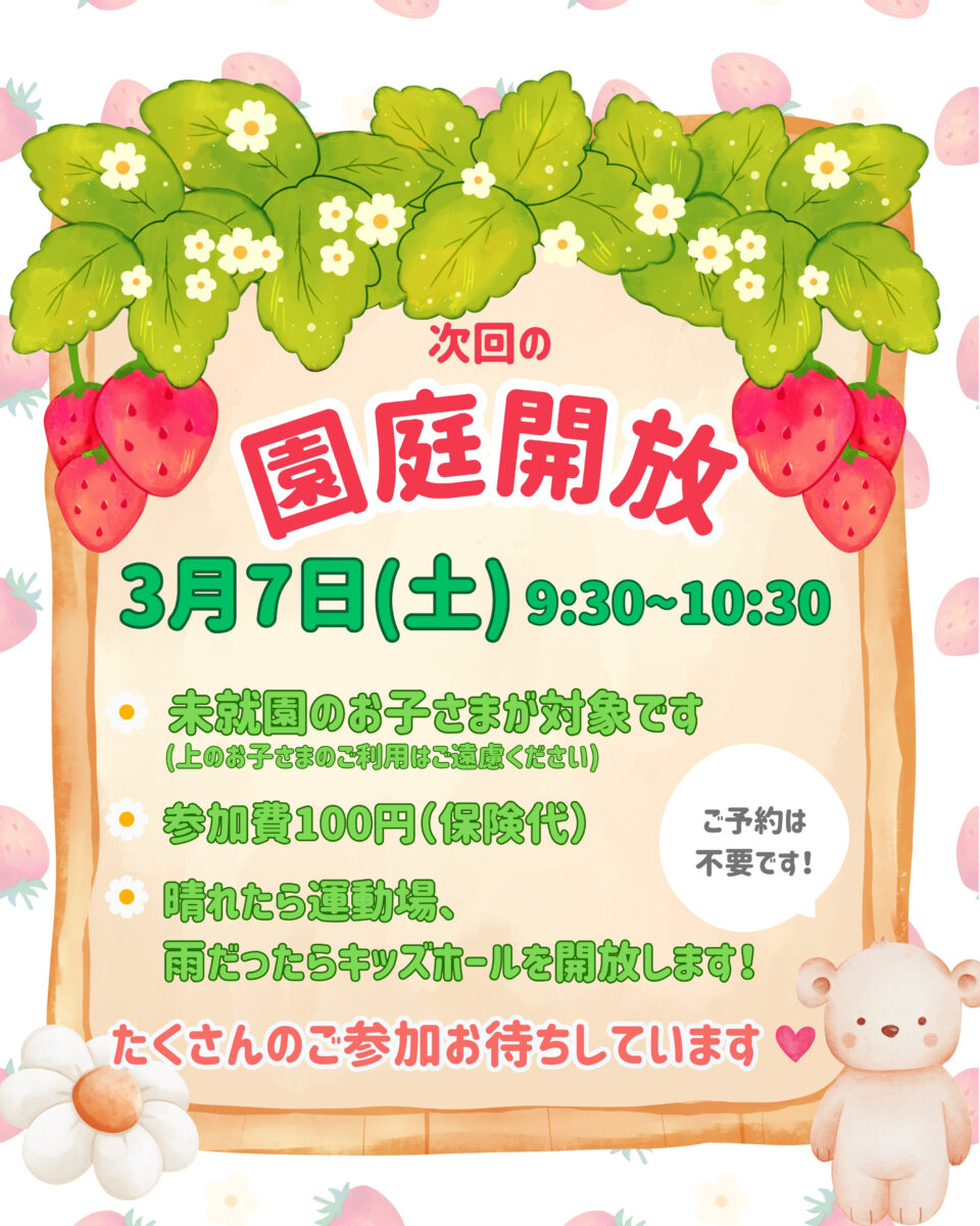🍓次回園庭開放のお知らせ🍓