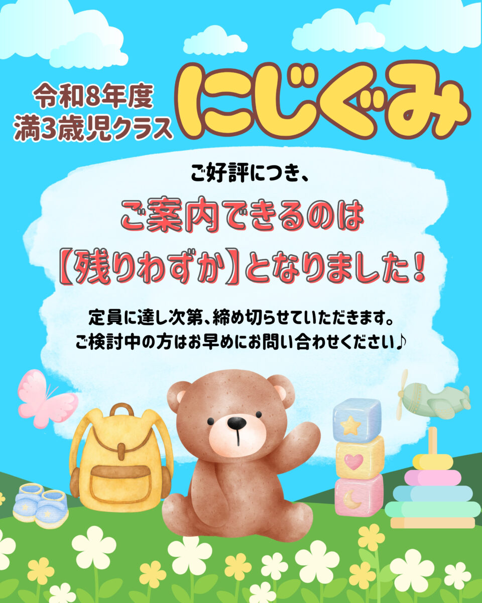 🌈満3歳児クラス『にじぐみ』残席あとわずかです🌈