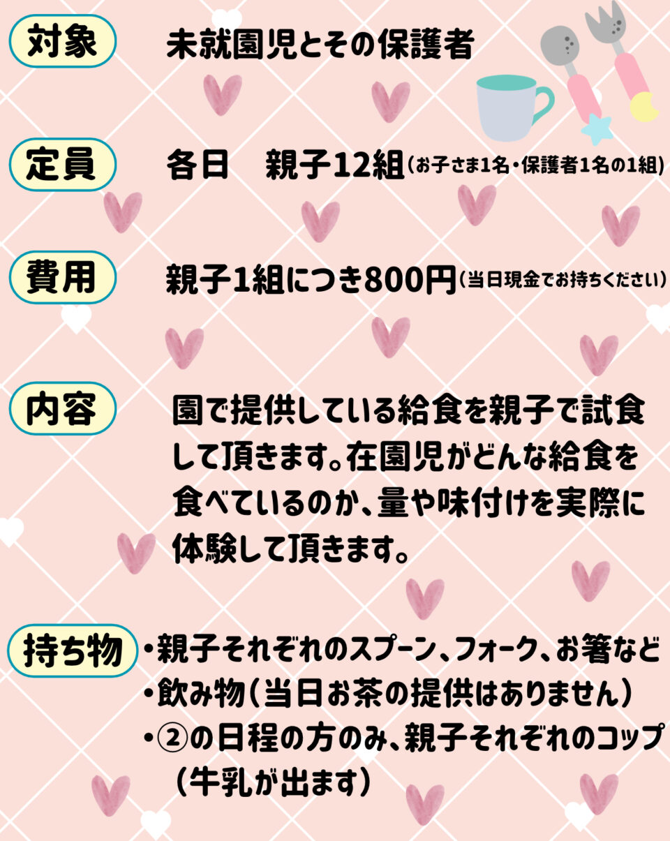 未就園児対象🍴給食試食会🍴